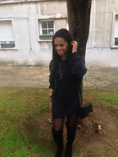 Eva Lima vestiu um lindo vestido azul e branco de veludo by Studio Maison.